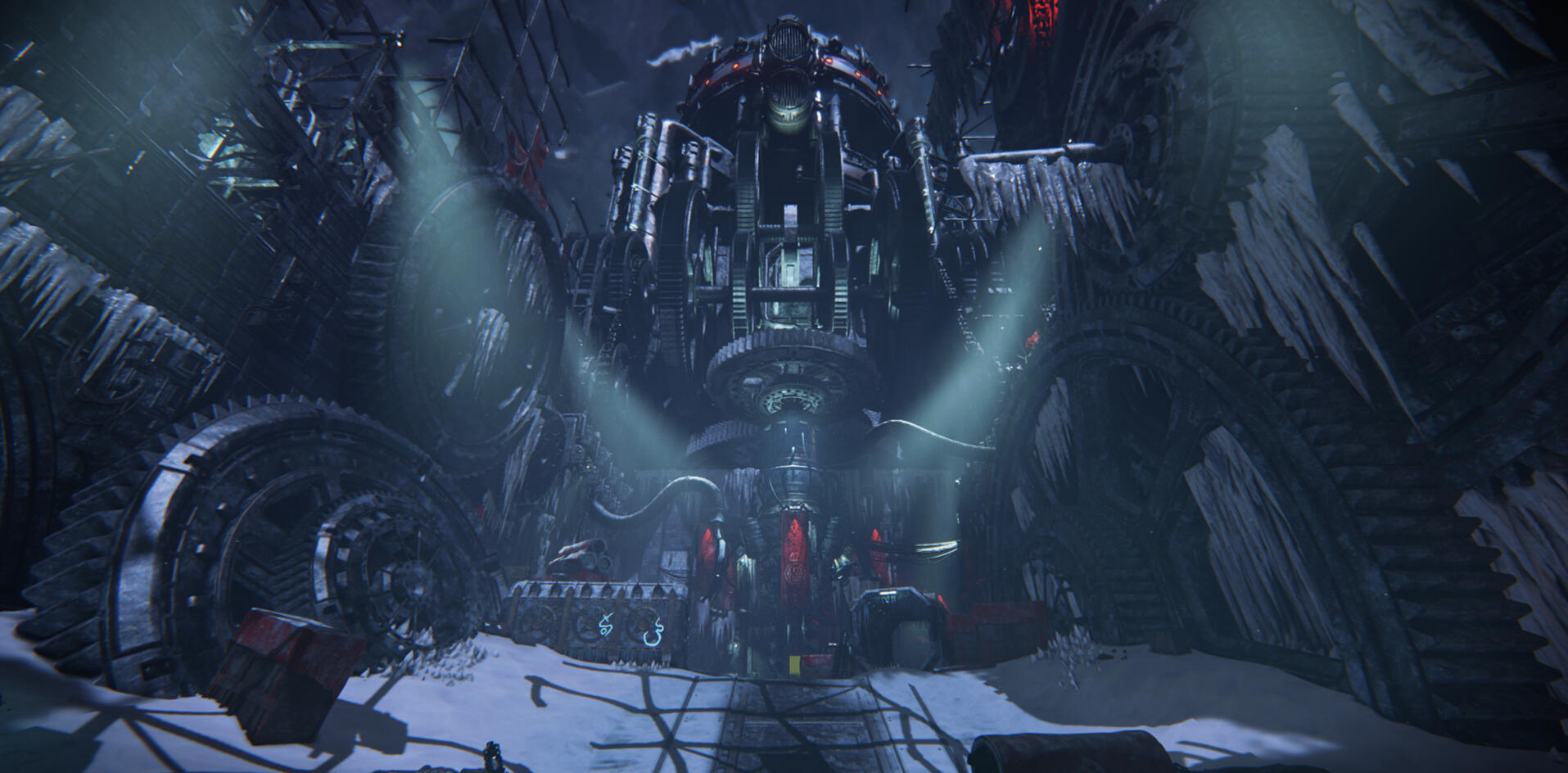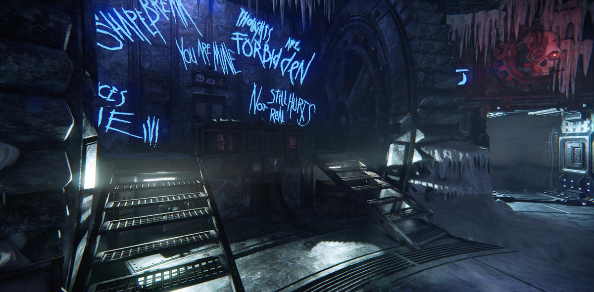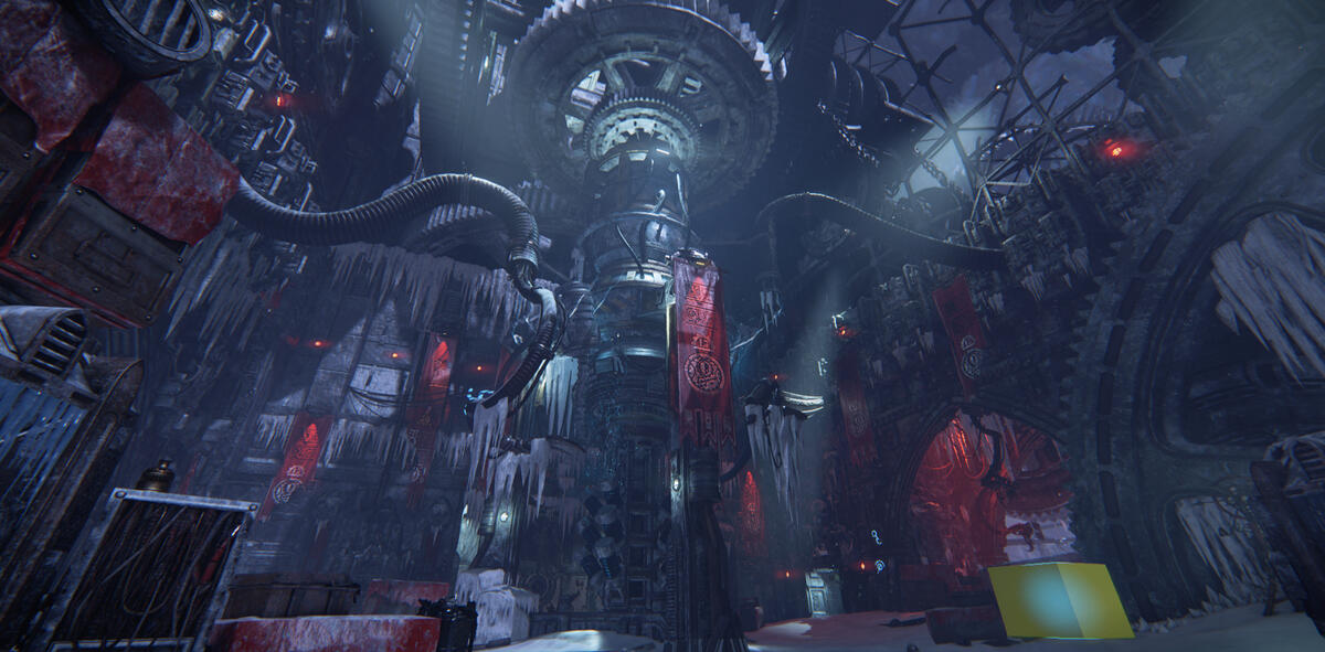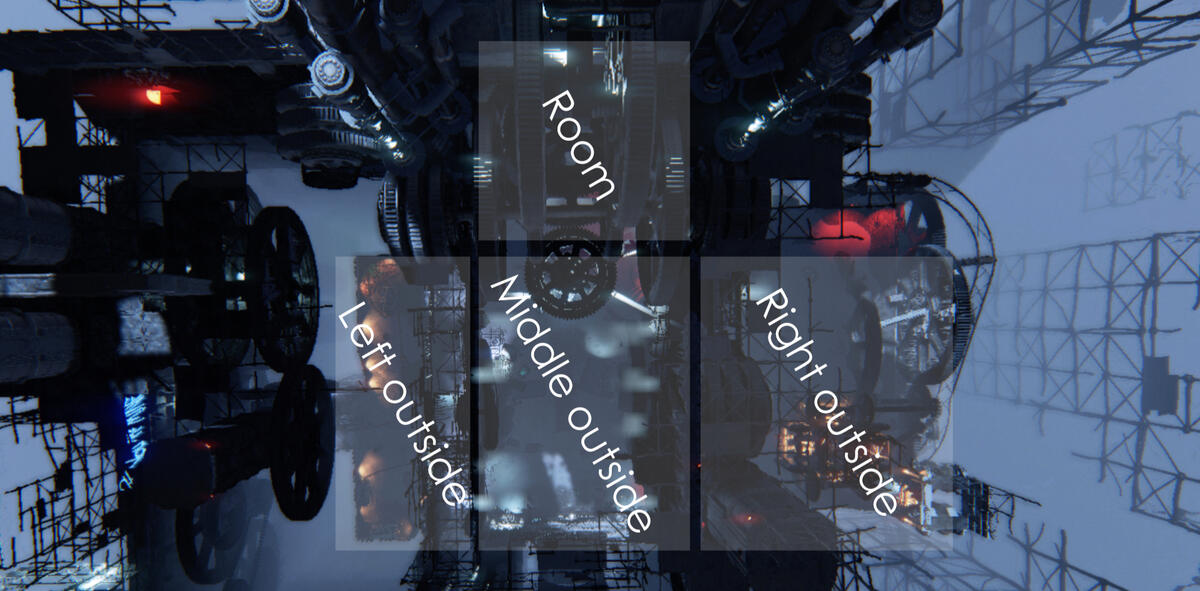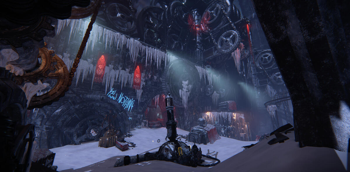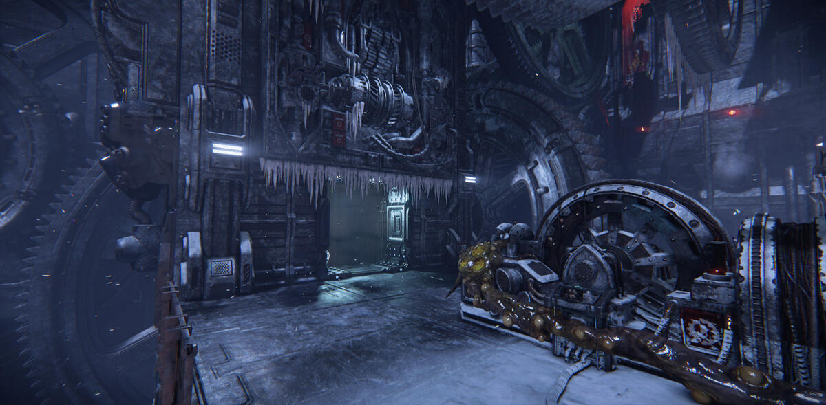 The room differs a lot from the other areas. Not only in appearance, but it also has an event where you have to blow up the ice that has stopped the machinery from moving.This had some interesting architecture to work with. I lit the big drill in the center from underneath to contrast the lighting in the rest of the level.