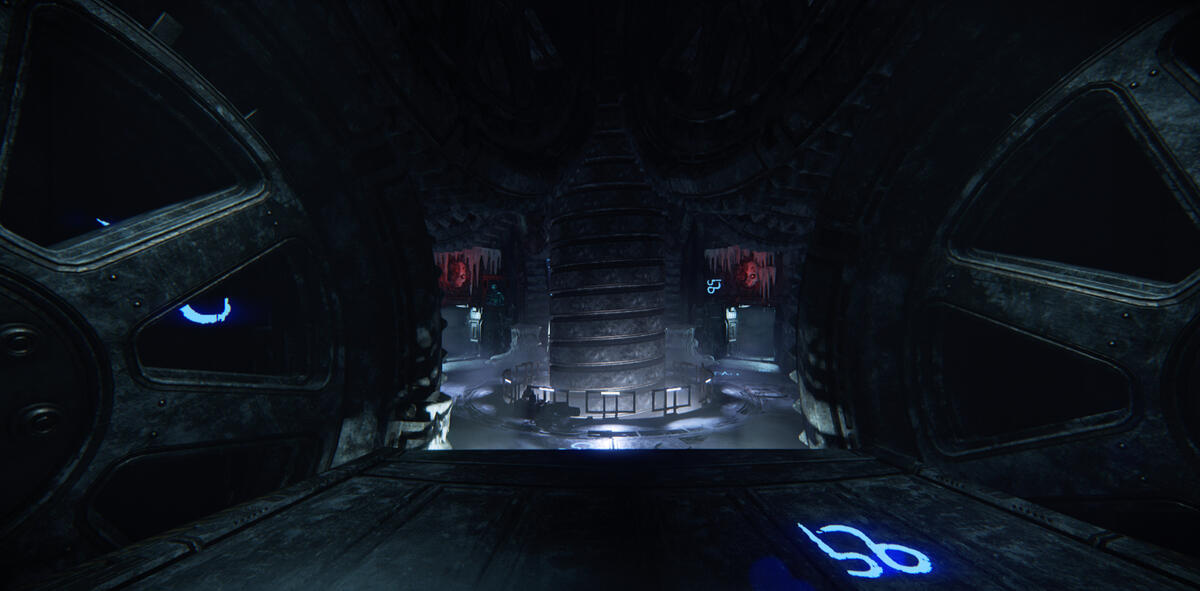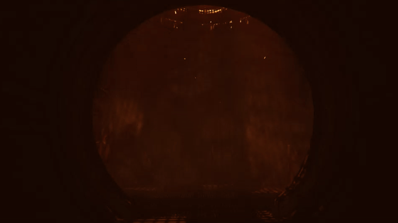 This was a vista that I wanted to highlight extra, both for it's striking esthetic and since an event happens in this area which creates a variation in pacing.I wanted to create an aggressive impression, to enhance the danger. I did this with hard shadows created by one key light and no proper fill light. Also, I increased the volumetric fog to give the unlit "arms" a silhouette.