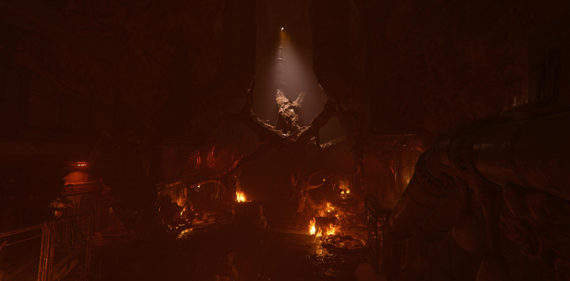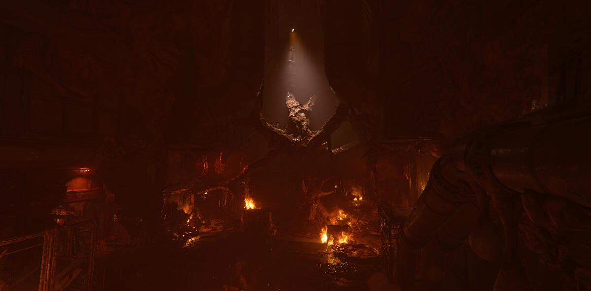 Interesting shapes from shadows from the fire. The idea is to pull the player's focus towards this area since this is where you open the gate in the previous picture.