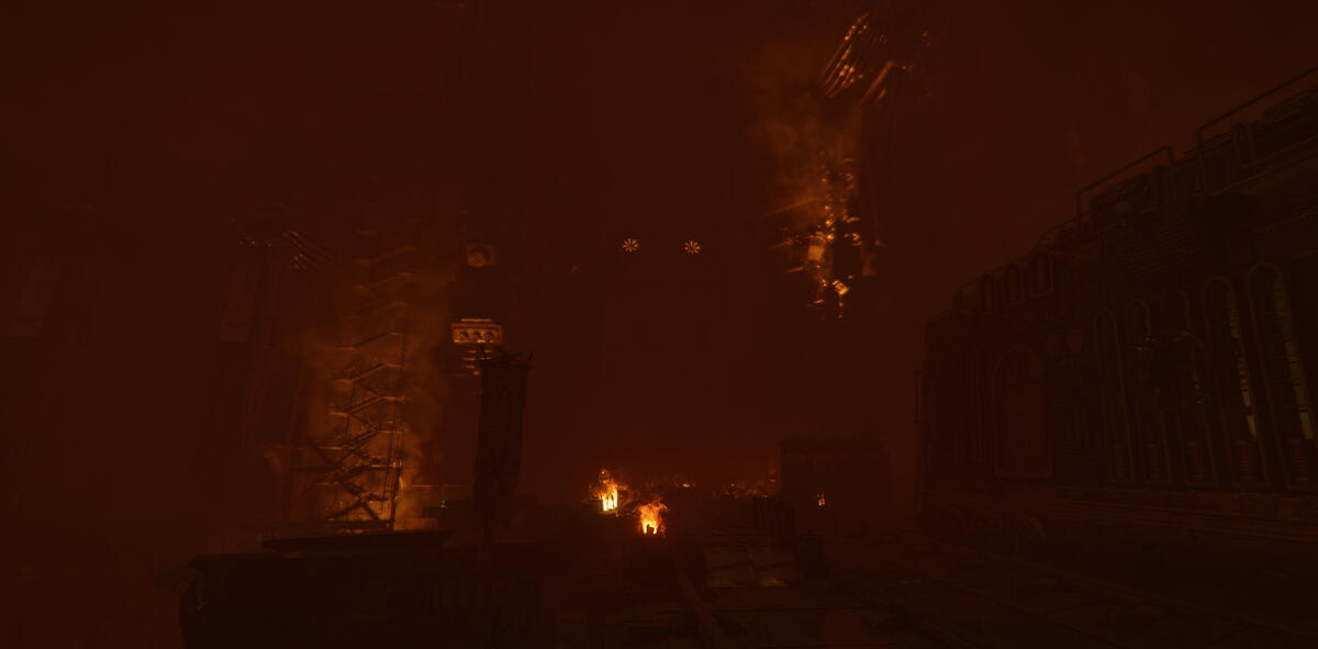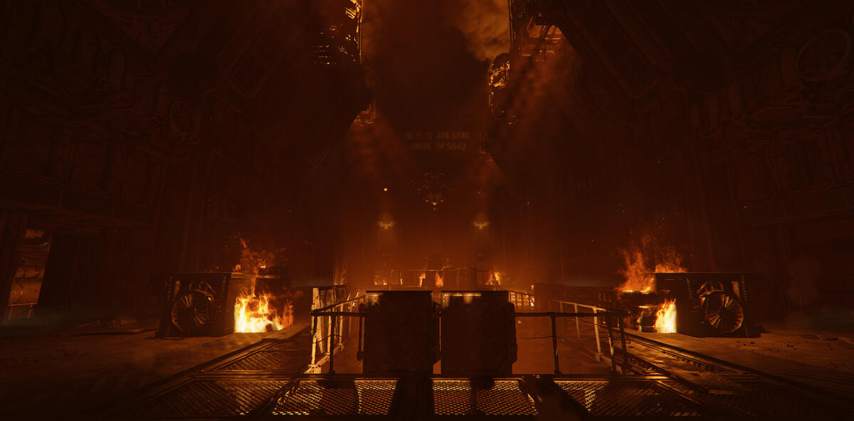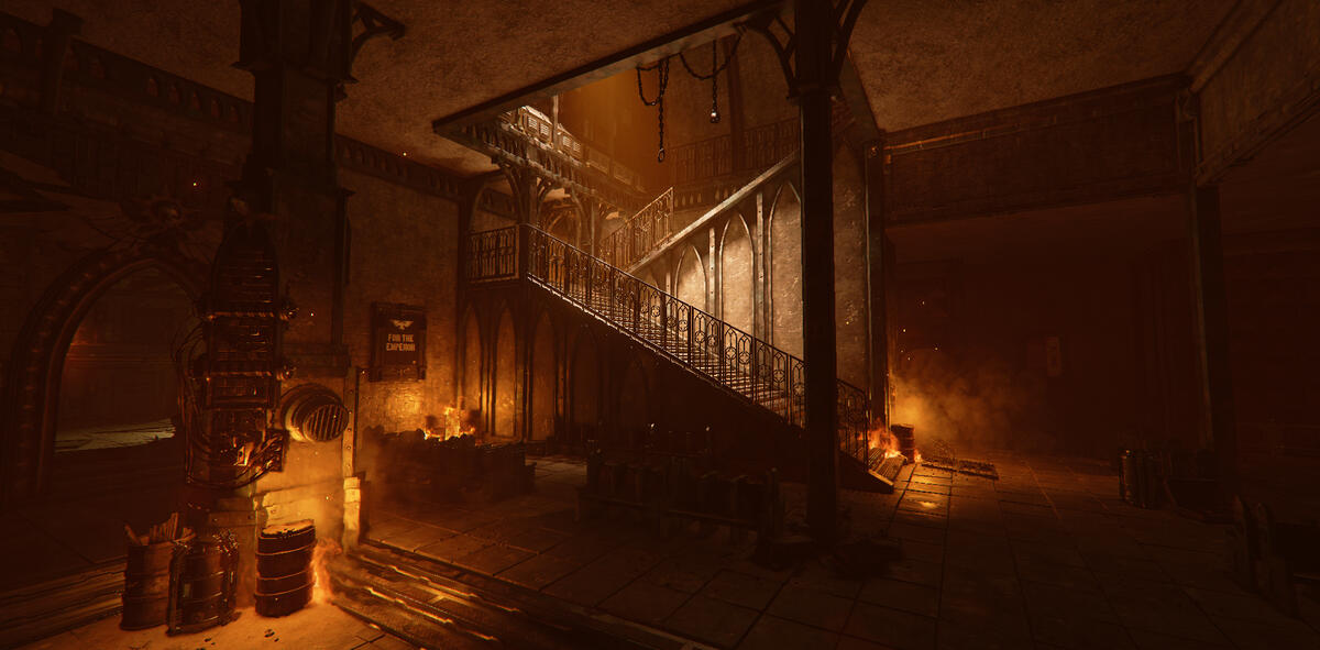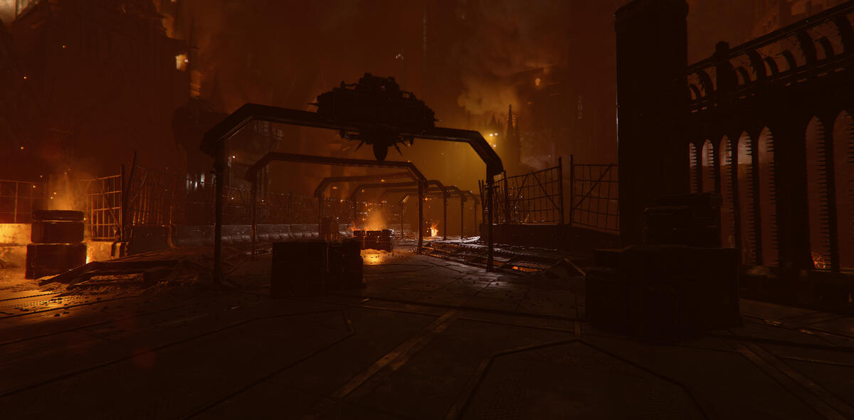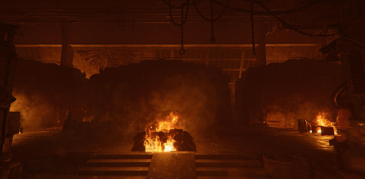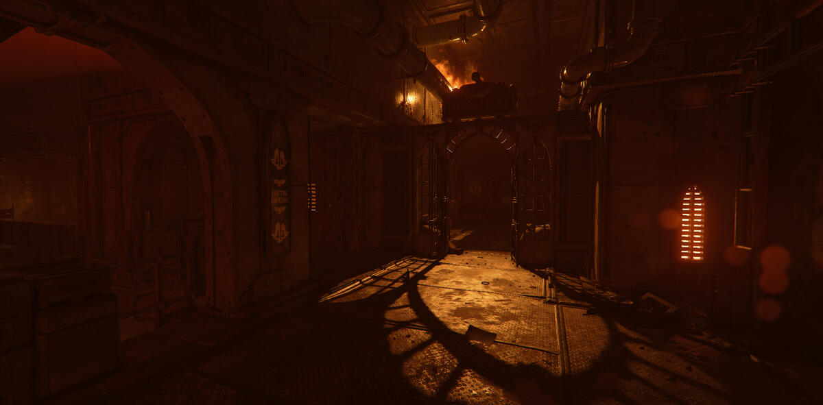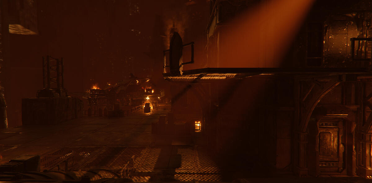 Ember is a game mode in Darktide where the area is taken over by enemies with flamethrowers. The setting is dark with mostly warm tones from fixtures and fires.My task here was to help guiding the player, and to enhance the mood of Ember. The contradiction between darkness and guiding the player was an interesting and fun challenge.In addition to the lighting, I also adjusted and added fire VFX. I talked to the level artist about his approach to make sure I kept his vision, and when possible, enhanced it. He focused a lot on silhouettes, so I kept this in mind when I started working on the level.