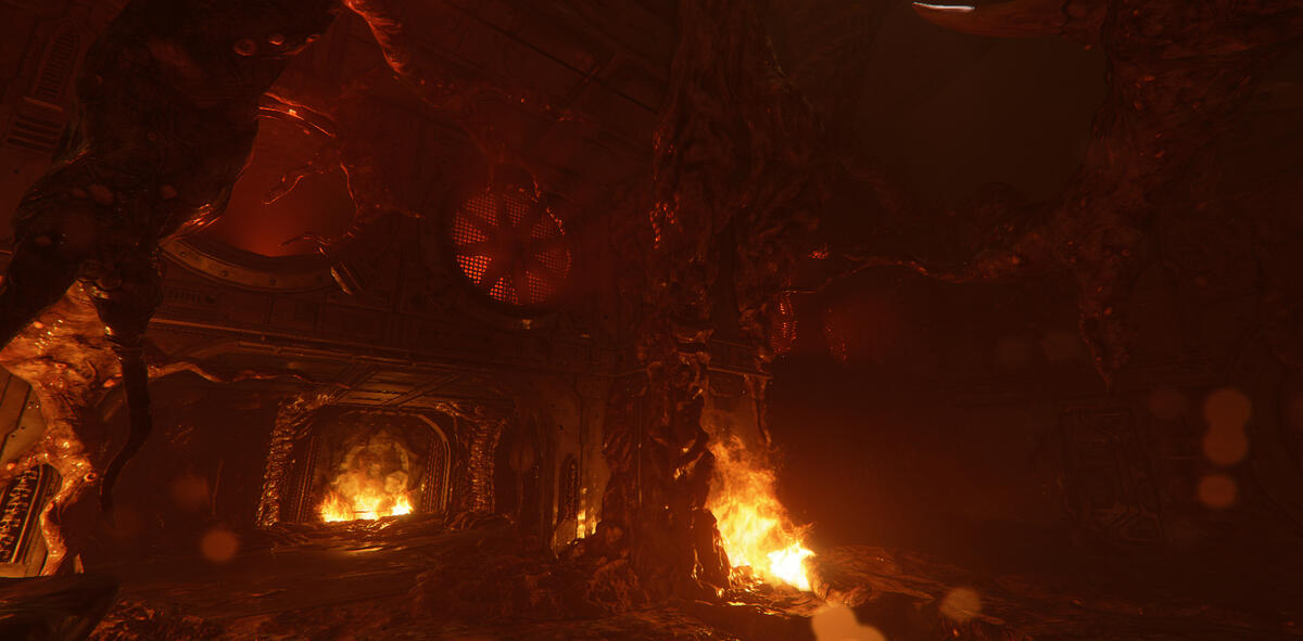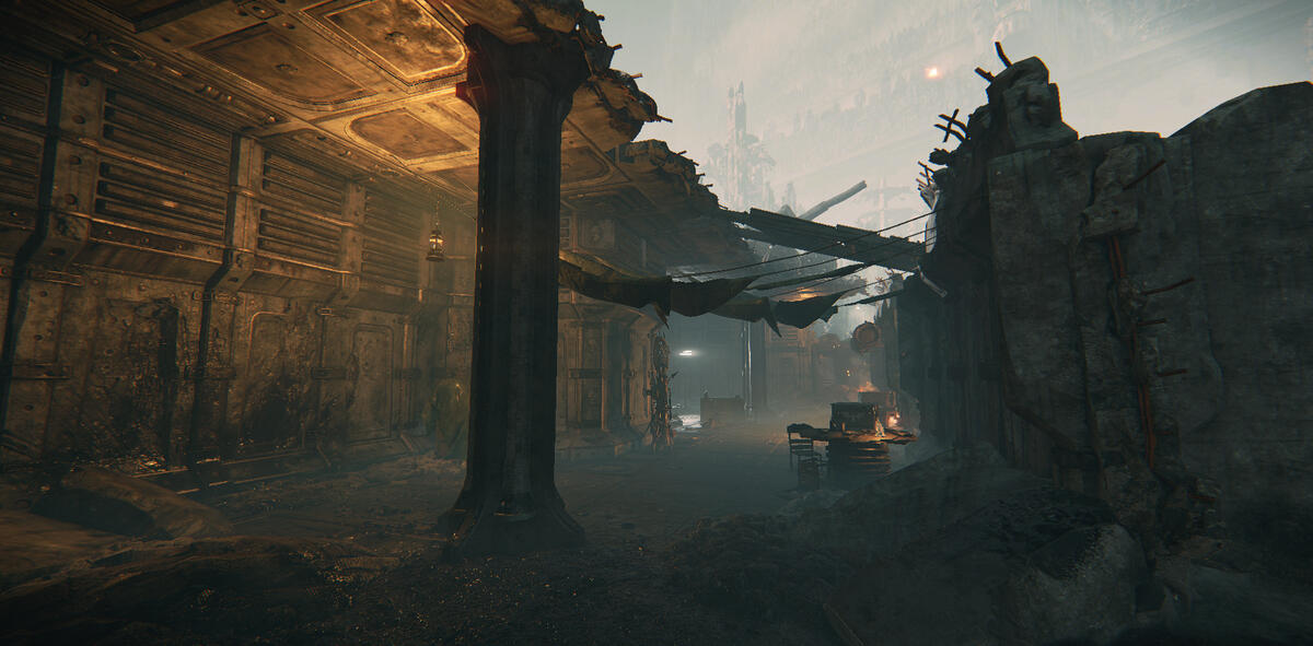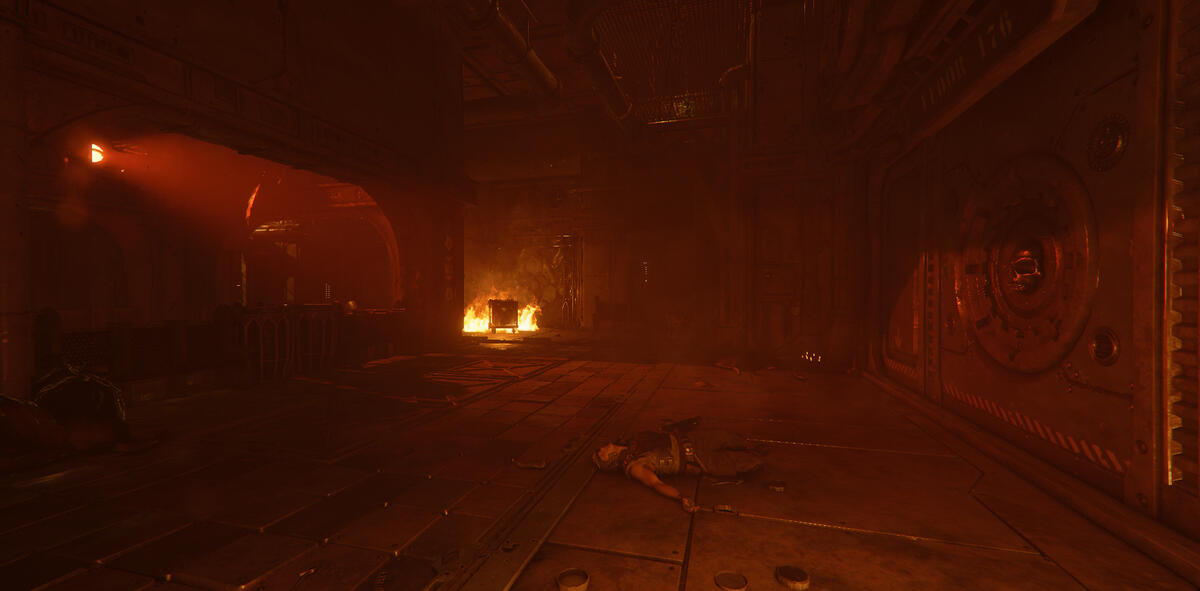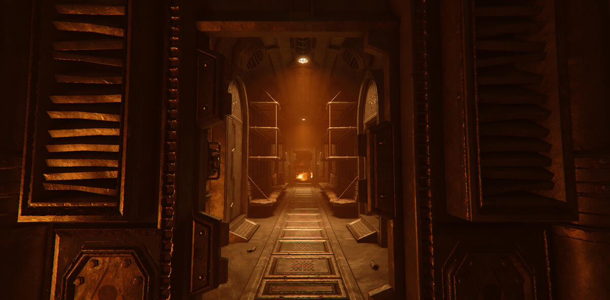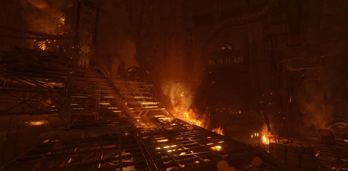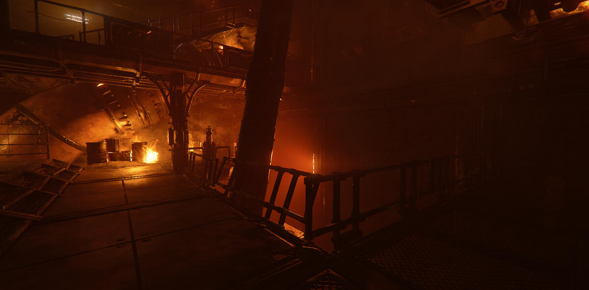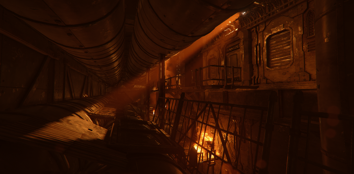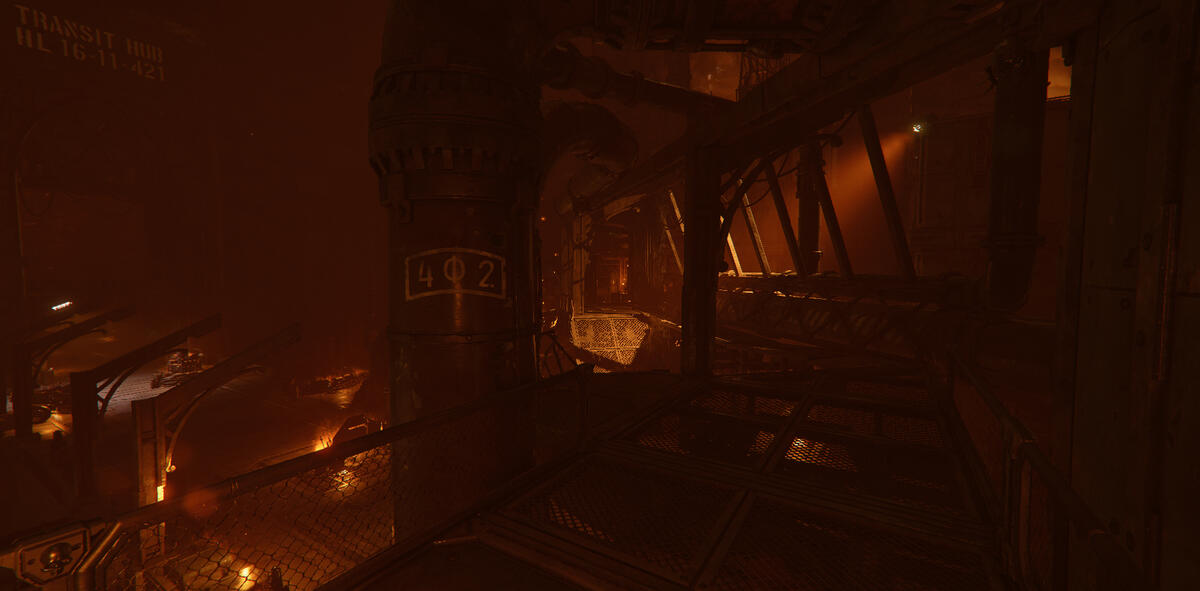 Ember is a game mode in Darktide where the area is taken over by enemies with flamethrowers. The setting is dark with mostly warm tones from fixtures and fires.My task here was to help guiding the player, and to enhance the mood of Ember. The contradiction between darkness and guiding the player was an interesting and fun challenge.In addition to the lighting, I also adjusted and added fire VFX. I talked to the level artist about his approach to make sure I kept his vision, and when possible, enhanced it. He focused a lot on silhouettes, so I kept this in mind when I started working on the level.