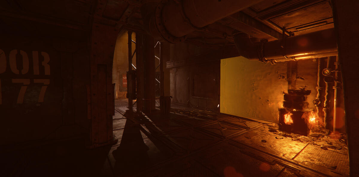 Red guiding light at the end of the area. This place was a bit tricky to navigate, so I wanted to highlight and guide the player forward.